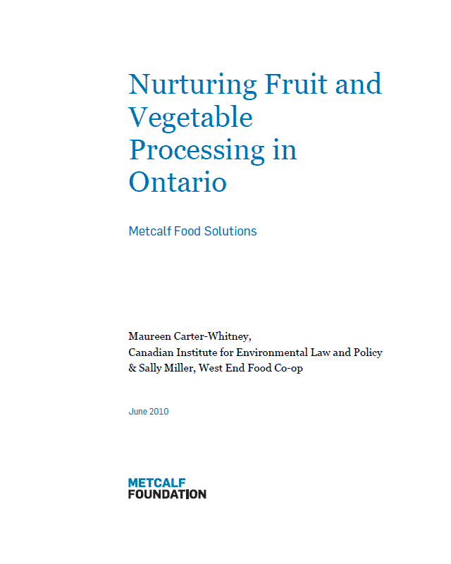 Description: Across Ontario, facilities for food processing have reduced in size or closed.The closures of small and medium-sized food-processing facilities have occurred at the same time that there has been growing demand for local food from consumers who are concerned about the provenance and safety of their food. Consumers cannot find the local products they seek, while farmers have lost processing facilities for some of the local ingredients they produce. A review of the entire supply chain reveals a chaotic landscape of piecemeal solutions and missed opportunities.This paper examines the structural, legislative, economic, and regulatory frameworks that have led to an Ontario food-processing sector that is inadequate for many small and medium-scale farmers.