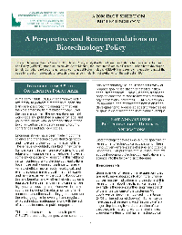 Title: Factsheet: A Perspective and Recommendations on Biotechnology Policy